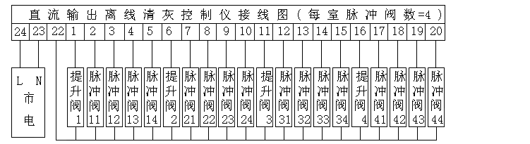 端子1、2、…分别接不同脉冲阀的“-”电源输入端。