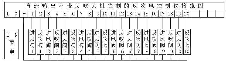 端子1、2、…分别接不同脉冲阀、提升阀的“L”电源输入端。