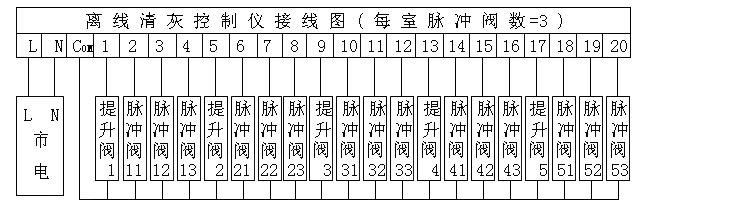 端子1、2、…分别接不同脉冲阀的“-”电源输入端。