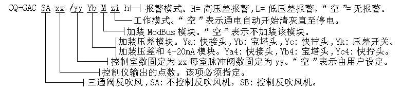 典型订货信息:CQ-GASA8YA(8点不控制反吹风机带快插头压差) 或 CQ-GASB8YA(8点控制反吹风机带快插头压差)