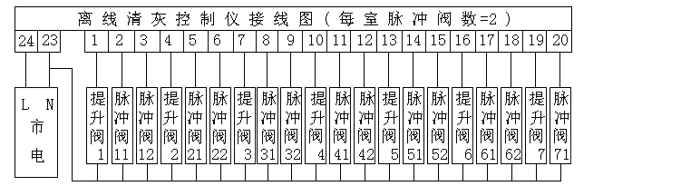 脉冲阀11、脉冲阀12...分别为第1室脉冲阀1、脉冲阀2。
