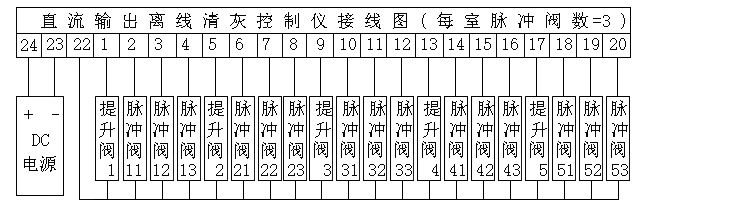 端子1、2、…分别接不同脉冲阀的“-”电源输入端。